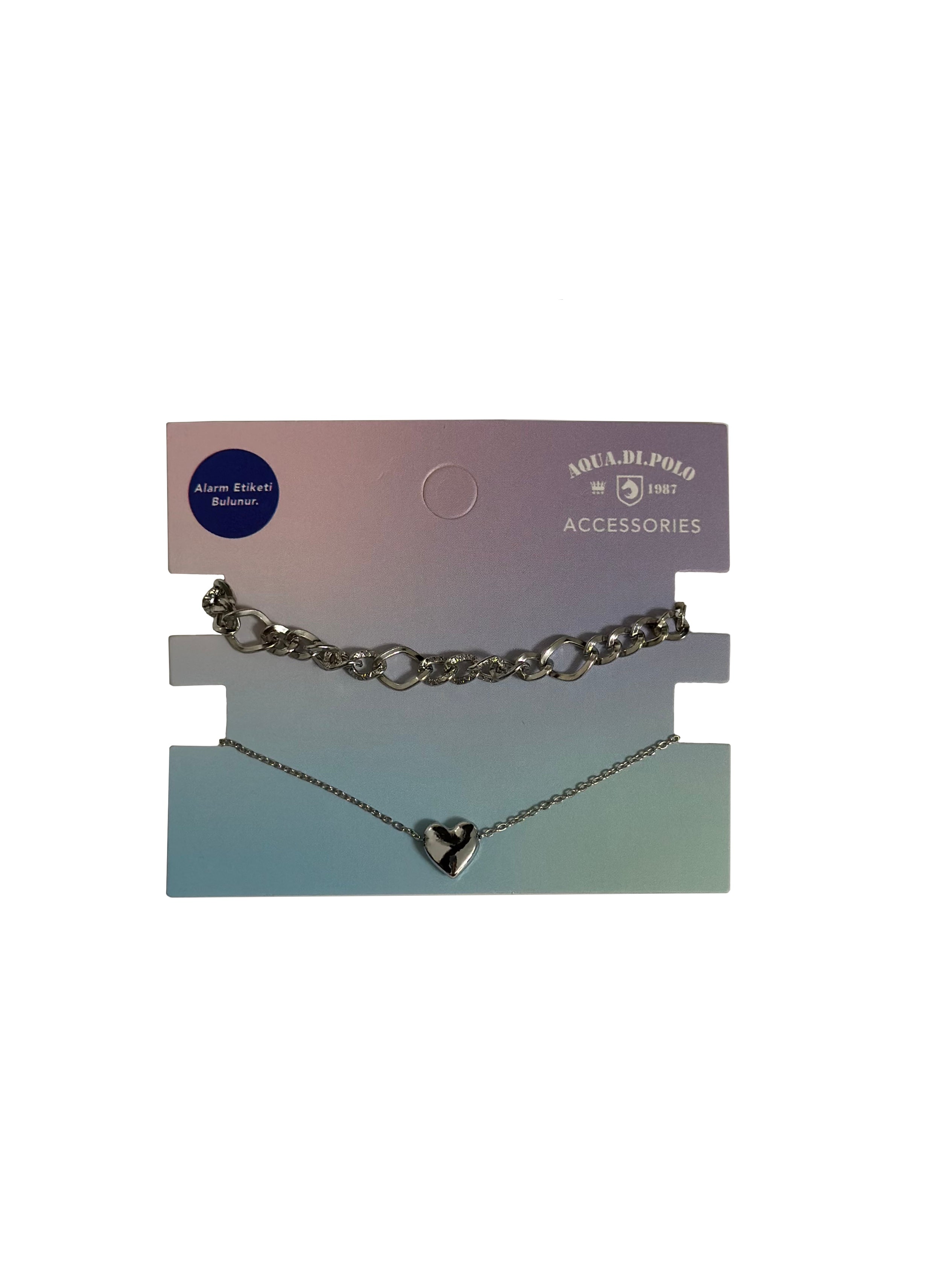 Aqua di Polo 1987 Kadın Gümüş Kalpli ve Zincir Bileklik